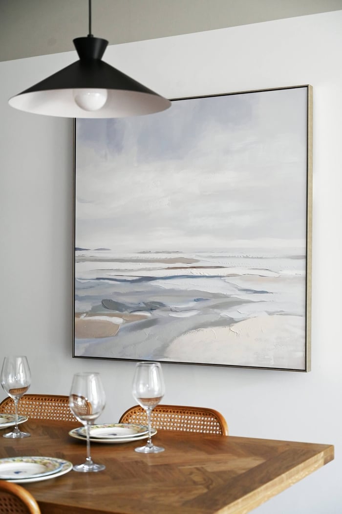 Just about anywhere! Large seascape artworks work beautifully in living rooms, bedrooms, hallways, or entryways—anywhere you want to create a sense of serenity and openness. Hung above a bed, sofa, or console, they act as a stunning focal point while setting a peaceful tone for the room. Our canvases also pair perfectly with Hamptons-style furniture and coastal-inspired décor. Smaller decorative canvases can be used in smaller hallway nooks, bathrooms, kitchens and even in a bookcase.