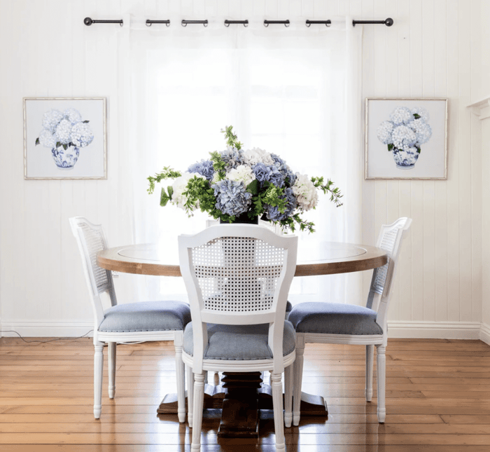 Whether styled in a vase, arranged on a canvas, or featured as part of your home décor, hydrangeas bring a serene and timeless feel that perfectly complements Hamptons interiors.