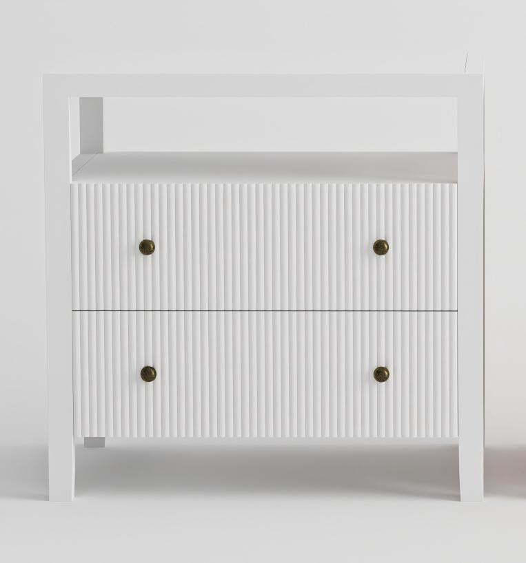 The Ellis Medium Bedside Table offers a refined update to the beloved Elliot design. Combining elegance with practicality, this timeless piece enhances your bedroom with its sleek, clean lines and traditional shape. Its distinctive vertical grooves on the two drawers provide a subtle yet stylish pop-out detail. With a structured square form, the table integrates effortlessly into diverse decor styles, from modern and contemporary spaces to laid-back Hamptons interiors.