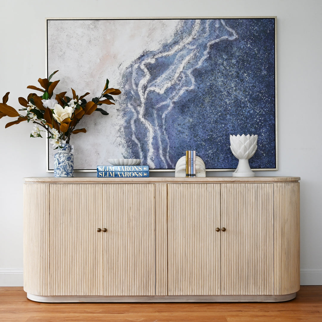 Elevate your dining or living space with the Emerson Large Elm Buffet, a statement piece that seamlessly blends style with substance. Crafted from rich elm wood, this sophisticated storage solution features distinctive ridged cupboards and generous interior shelving, allowing you to keep essentials beautifully concealed while maintaining a curated aesthetic. The light tones of elm add organic character to any room, making this buffet as much a design focal point as it is a practical storage powerhouse.
