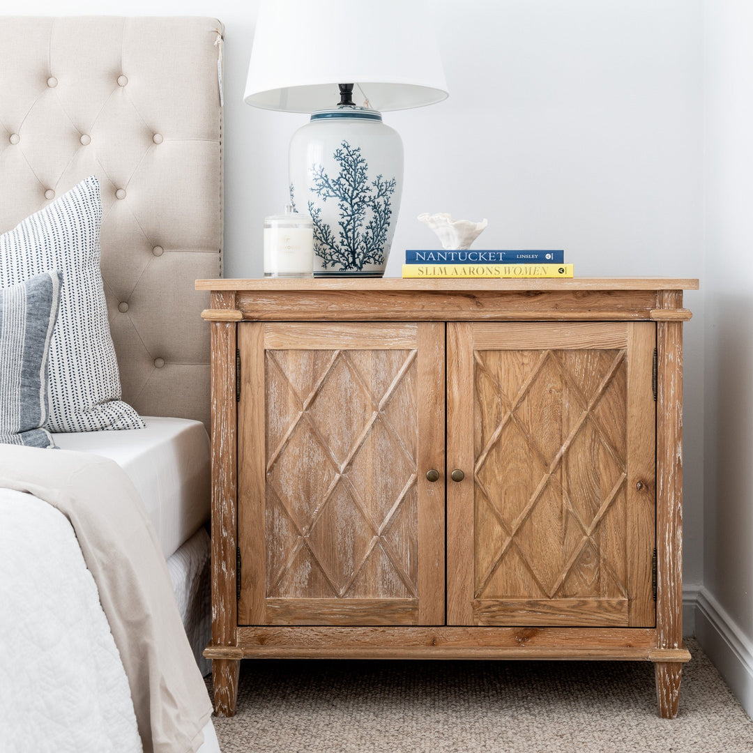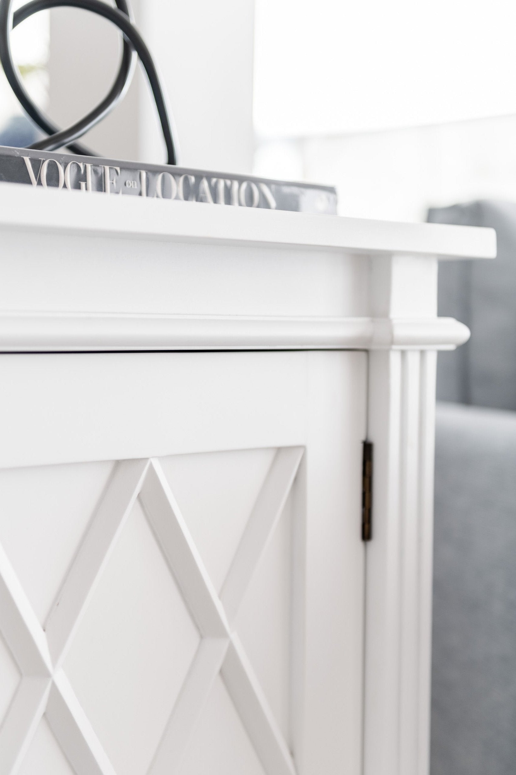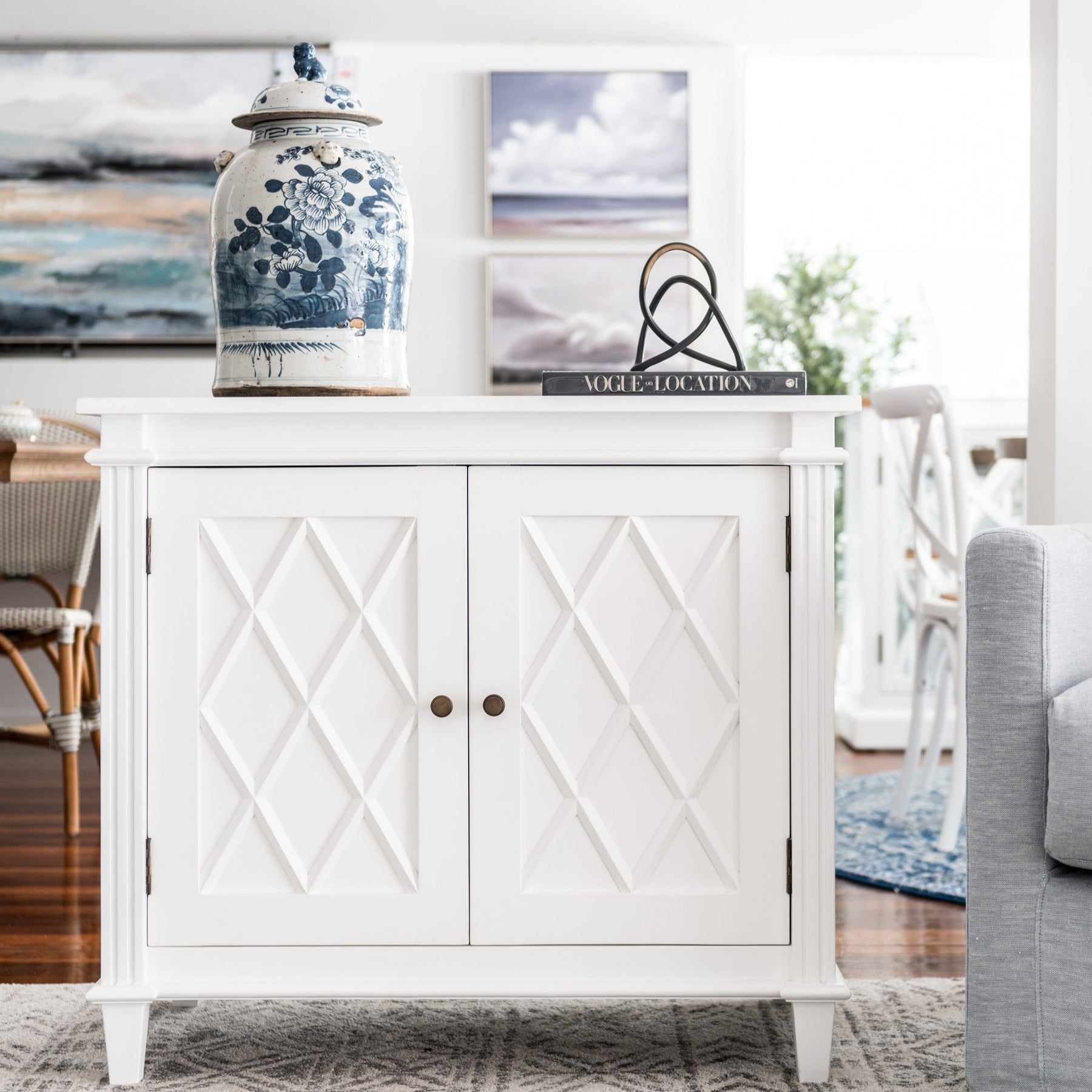 Our 'Ascot' small buffet features stunning geometric fretwork detailing. This signature fretwork diagonal diamond design on the drawers creating a beautiful yet understated statement. The fretwork detailing is offset by its classic profile and simple brass knobs. This range is versatile enough to suit any home, whether it’s classic Hamptons, modern Hamptons, or even a contemporary space. The small buffet offers ample storage with a shelf inside of the cupboard. Our clients use this as a small buffet, large bedside table or even a drinks cabinet.
