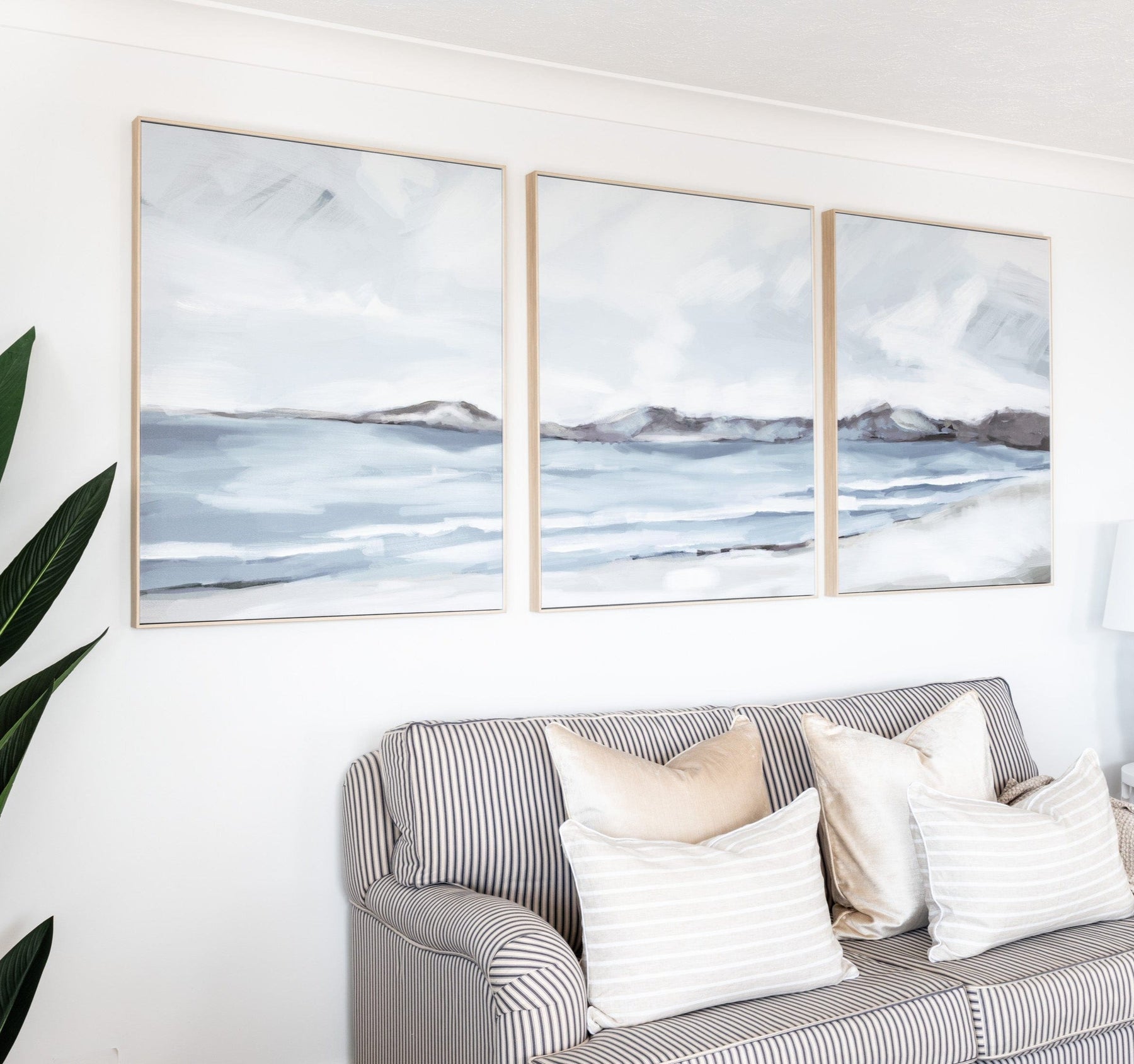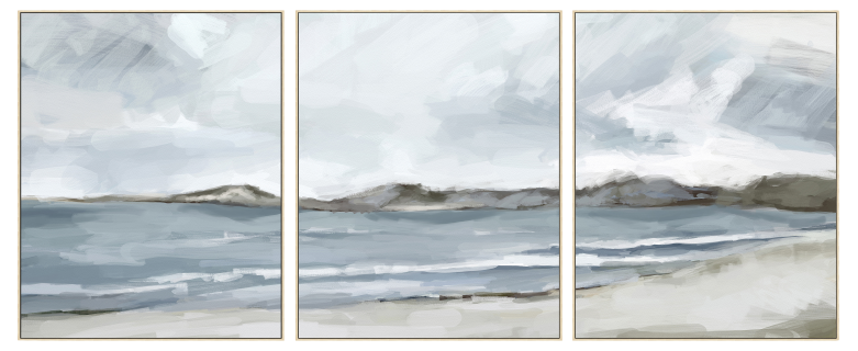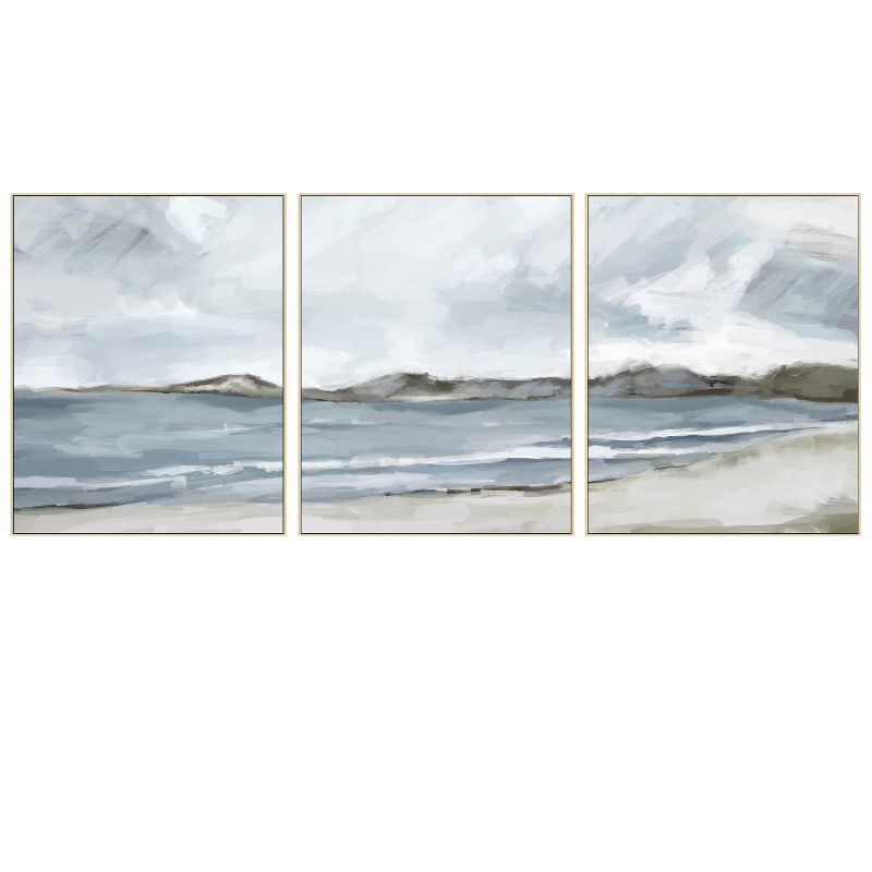 This beautiful 3 piece artwork is perfect to add colour, texture and interest to larger spaces within your home. This printed canvas is brought to life with textured hand painted acrylic highlights and set in a natural frame.