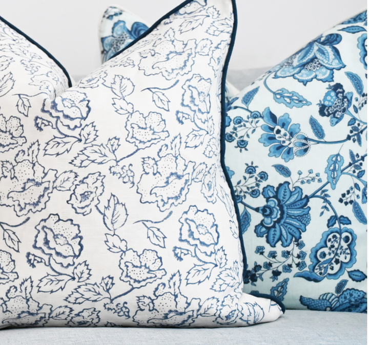 The 'Bloom' Linen Cushion is the perfect choice for a Hamptons inspired home. This is made using traditional screen print techniques on a beautiful fresh white linen and finished with a white piping.