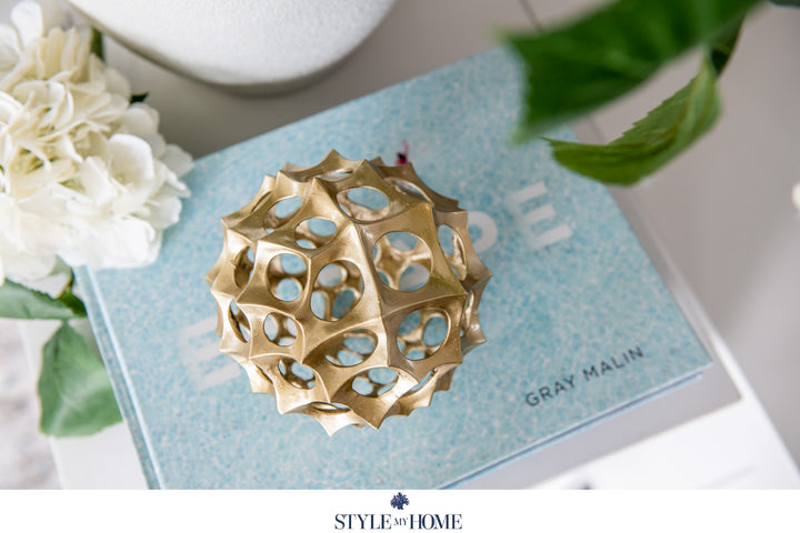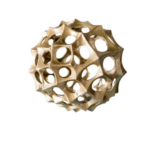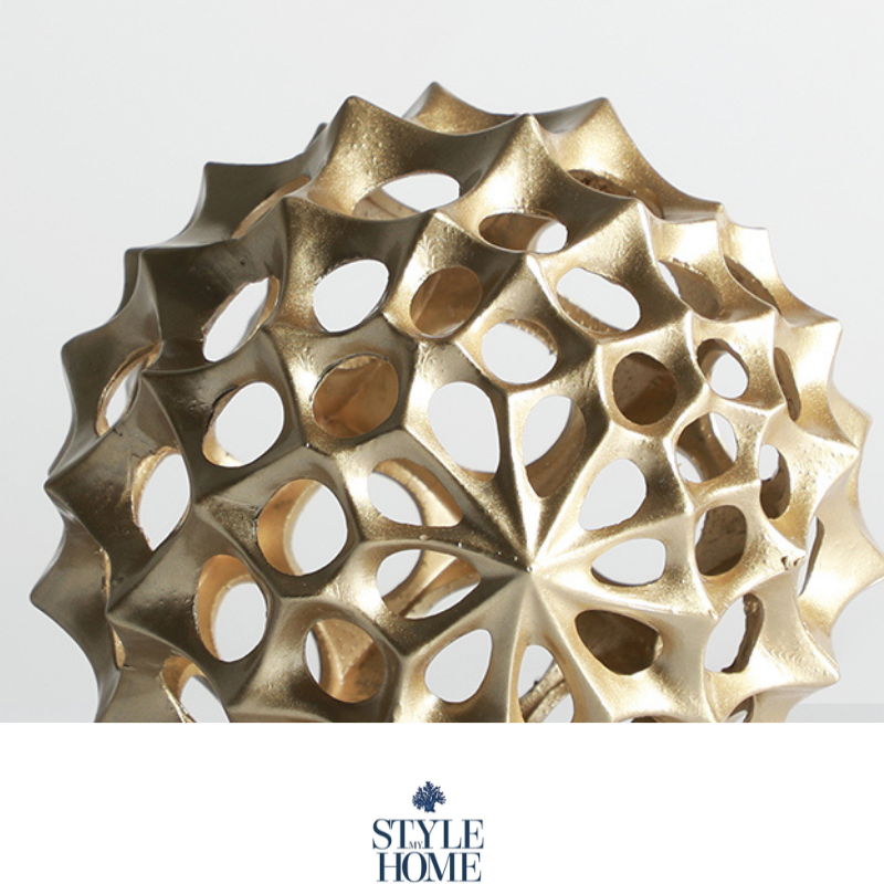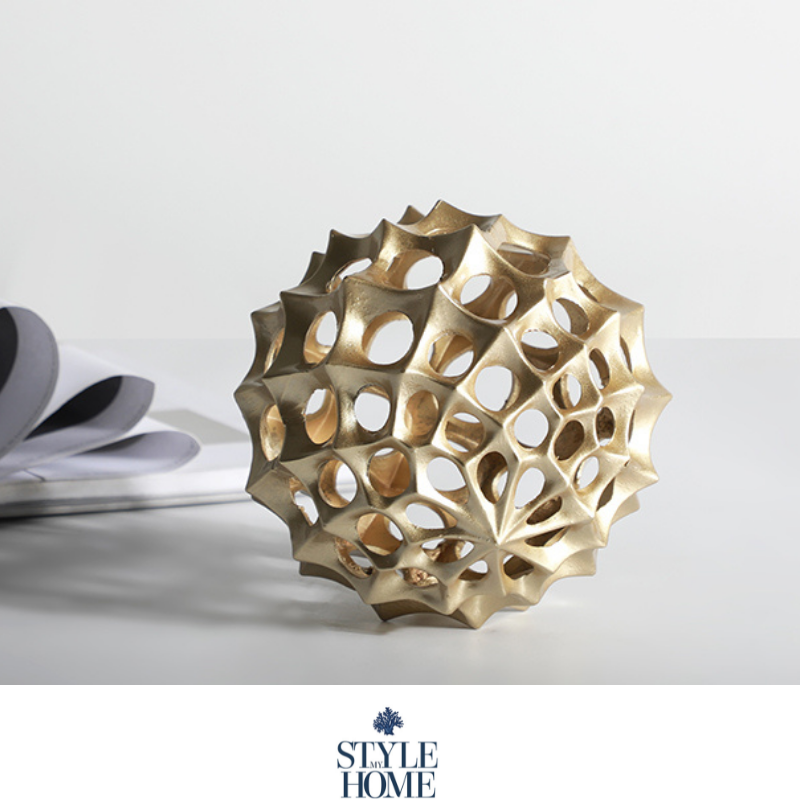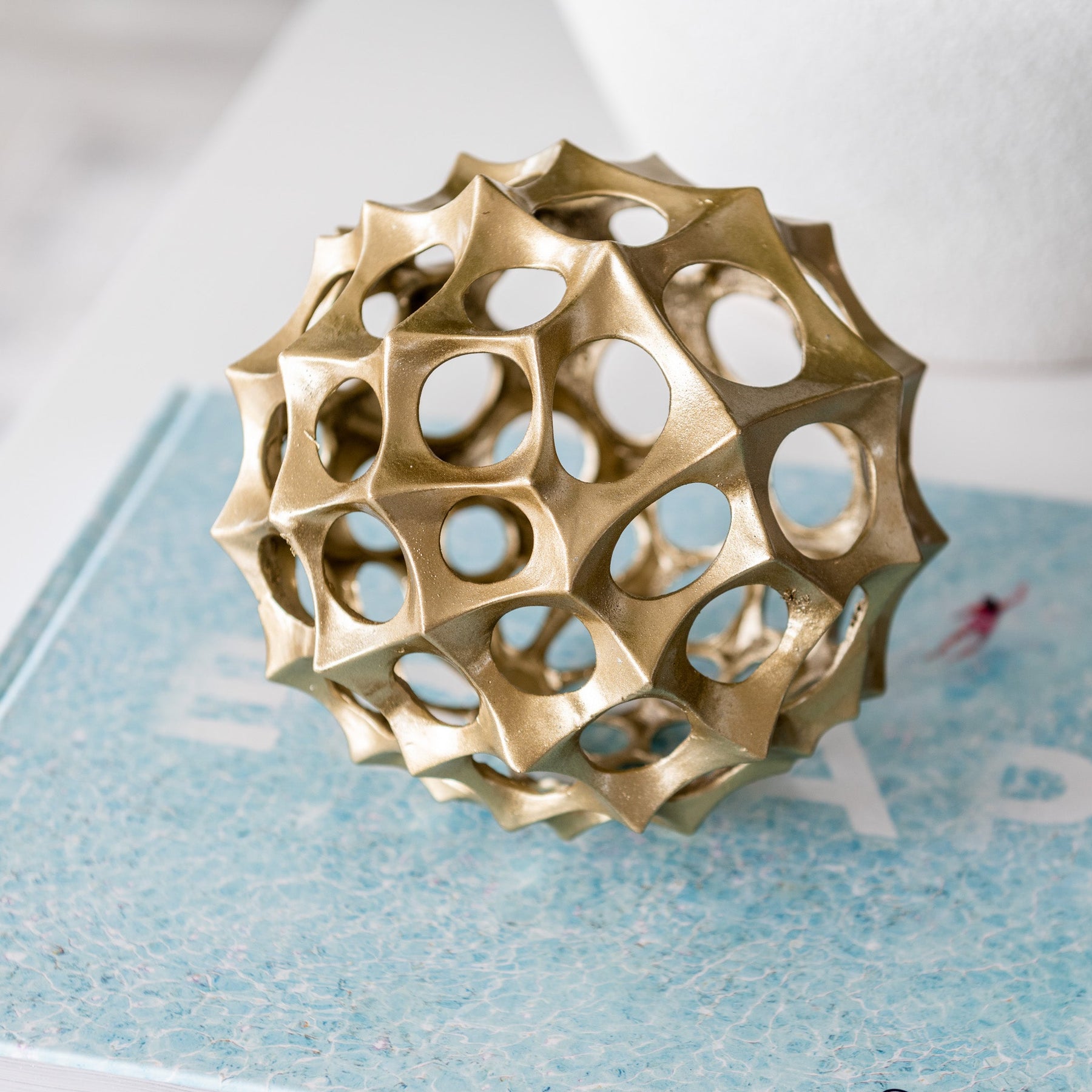 This sphere sculpture is the perfect decorative piece for your bookcase or bench. Made from iron.