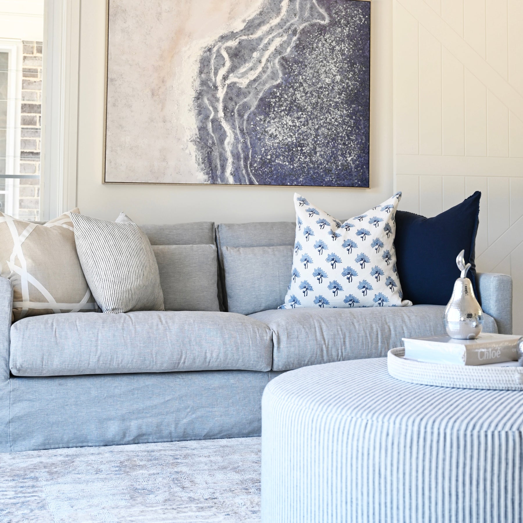 This lounge is available in three of our signature linen colours: Oatmeal, Duck Egg Blue, and Navy. Each offers a neutral yet elevated feel to match a variety of décor styles.