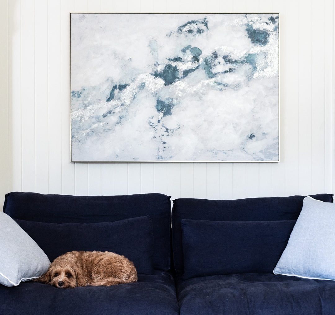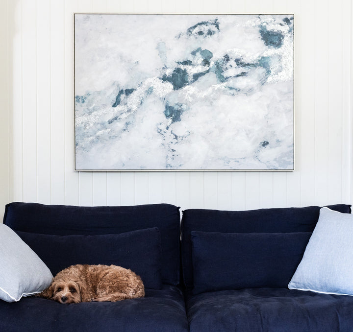 By popular request we are now developing a larger format canvas similar to our bestselling Foamy Mist. The beautiful white and blue hues and the additional silver foiling throughout are stunning.