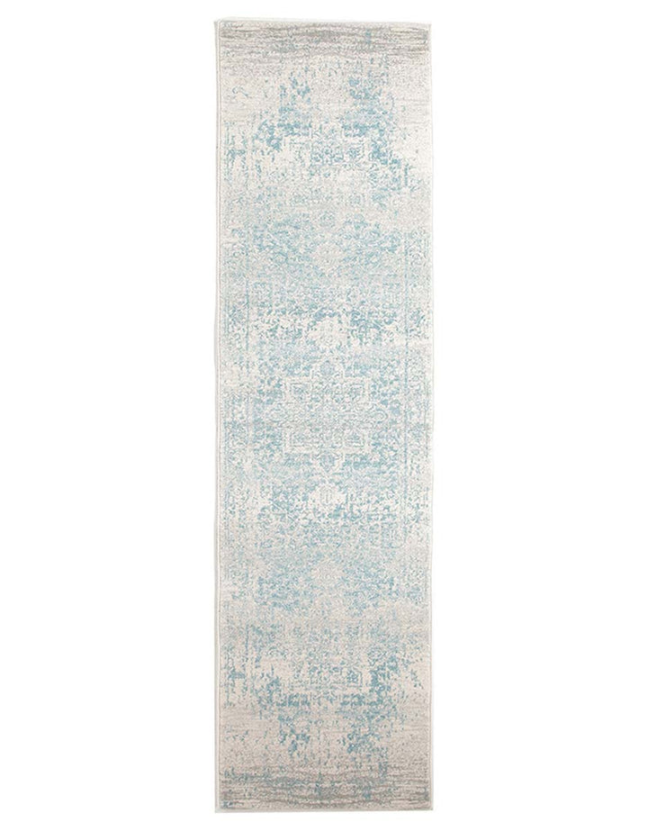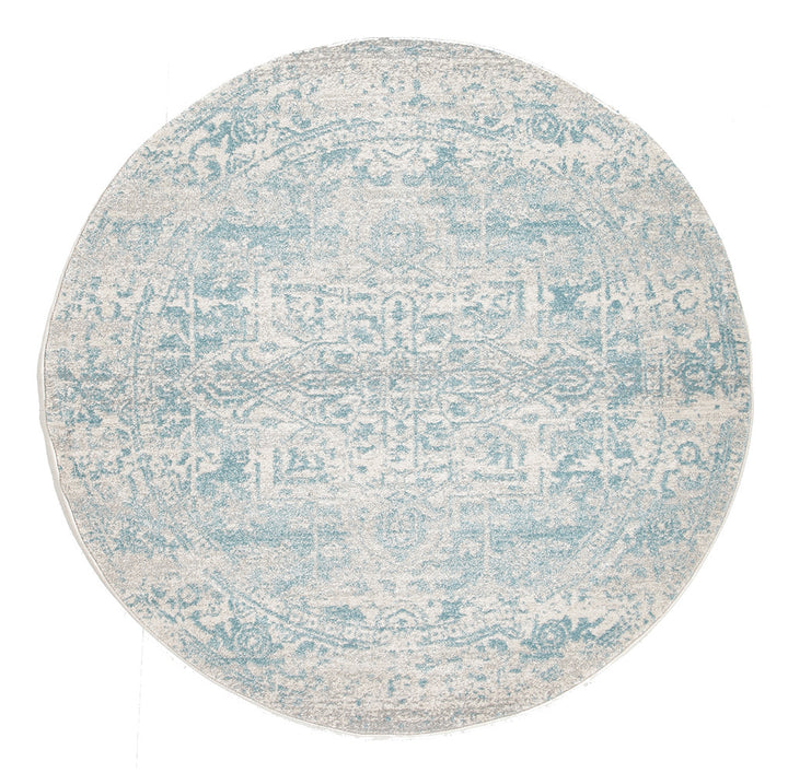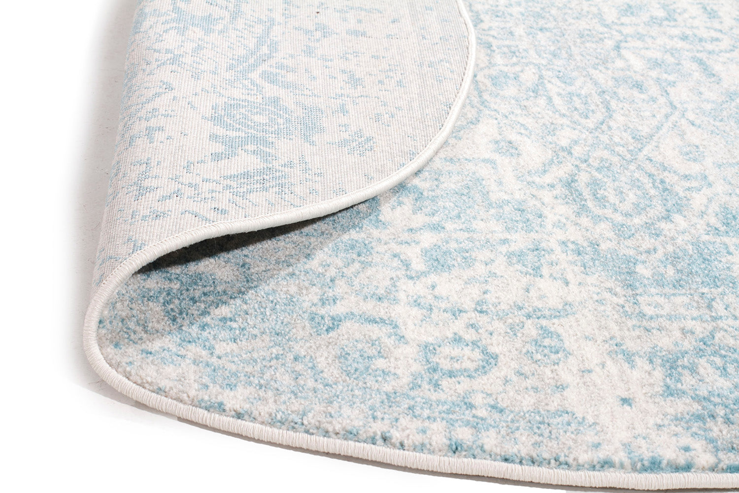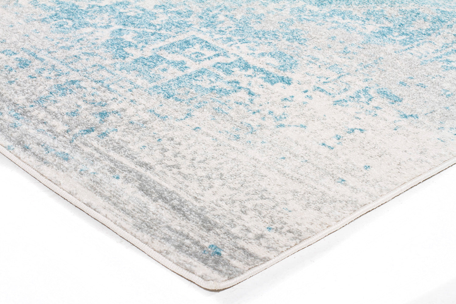 Elevate your space with the Glacier White Blue Transitional Rug from the renowned Evoke collection. This exceptional piece blends contemporary design with a luxurious feel, showcasing a captivating emblem center framed by intricate patterns against a soothing blue and off-white backdrop. Crafted with advanced power looming technology from premium polypropylene and soft yarns, it adds distinctive style and comfort, enhancing the character of any room.