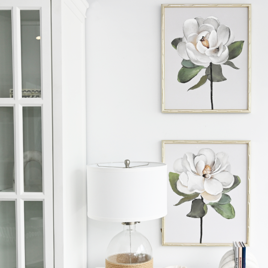Create a timeless and sophisticated look with our 'Magnolia 1' canvas. This stunning floral is perfect for styling classic and coastal Hamptons homes. Display on its own or pair with our 'Magnolia 2' canvas.
