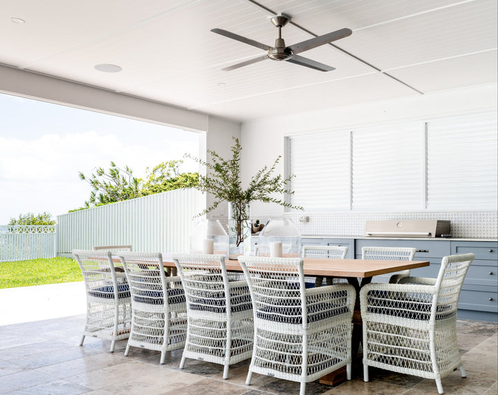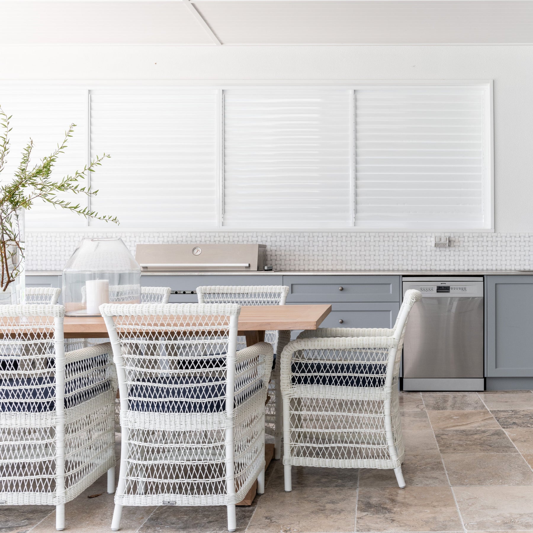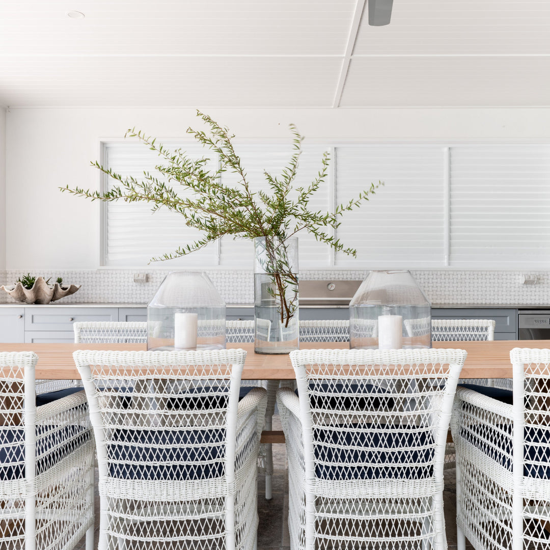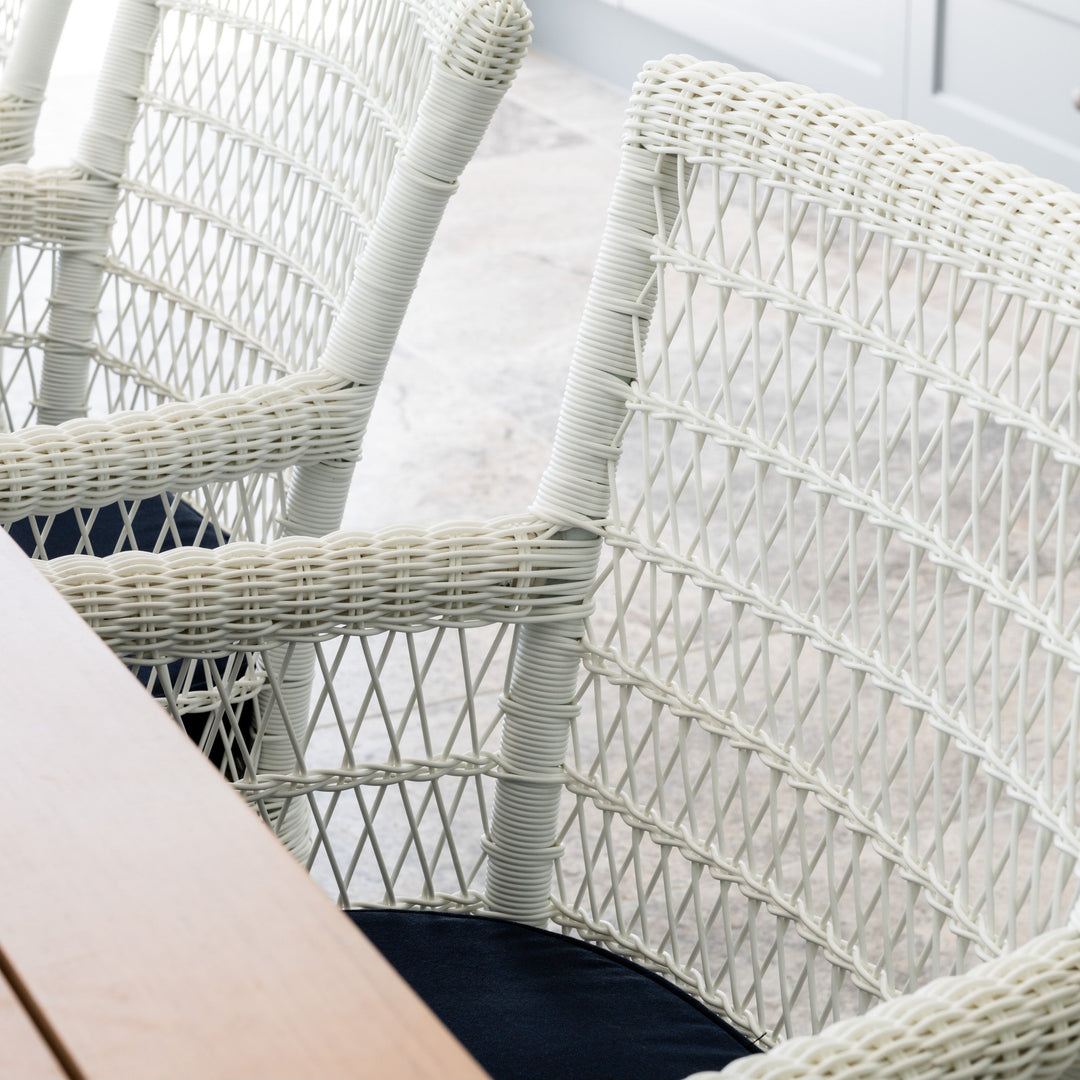The ‘Oasis’ outdoor range is made from the polyethylene fibre, polyrod. It can withstand UV radiation, extreme heat, oxidation, high moisture mould and mildew. Because it is resistant to moisture, salt and chlorinated water, it is perfect for outdoor, beachside living.