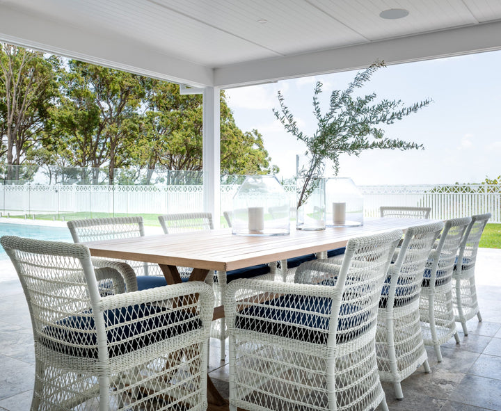 ***Important note- One set of the outdoor covers are included in the purchase of this setting. Customers can choose between the colours duck egg blue, navy or oatmeal as we have had extra cushion covers made. If purchasing online please make a note in comments with your preferred colour. Alternatively a Style My Home staff member will be in touch to discuss your preferred colour.