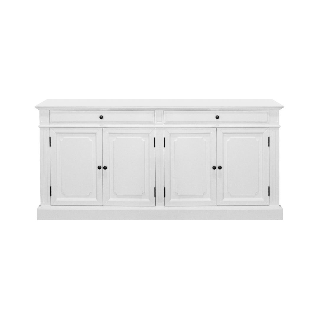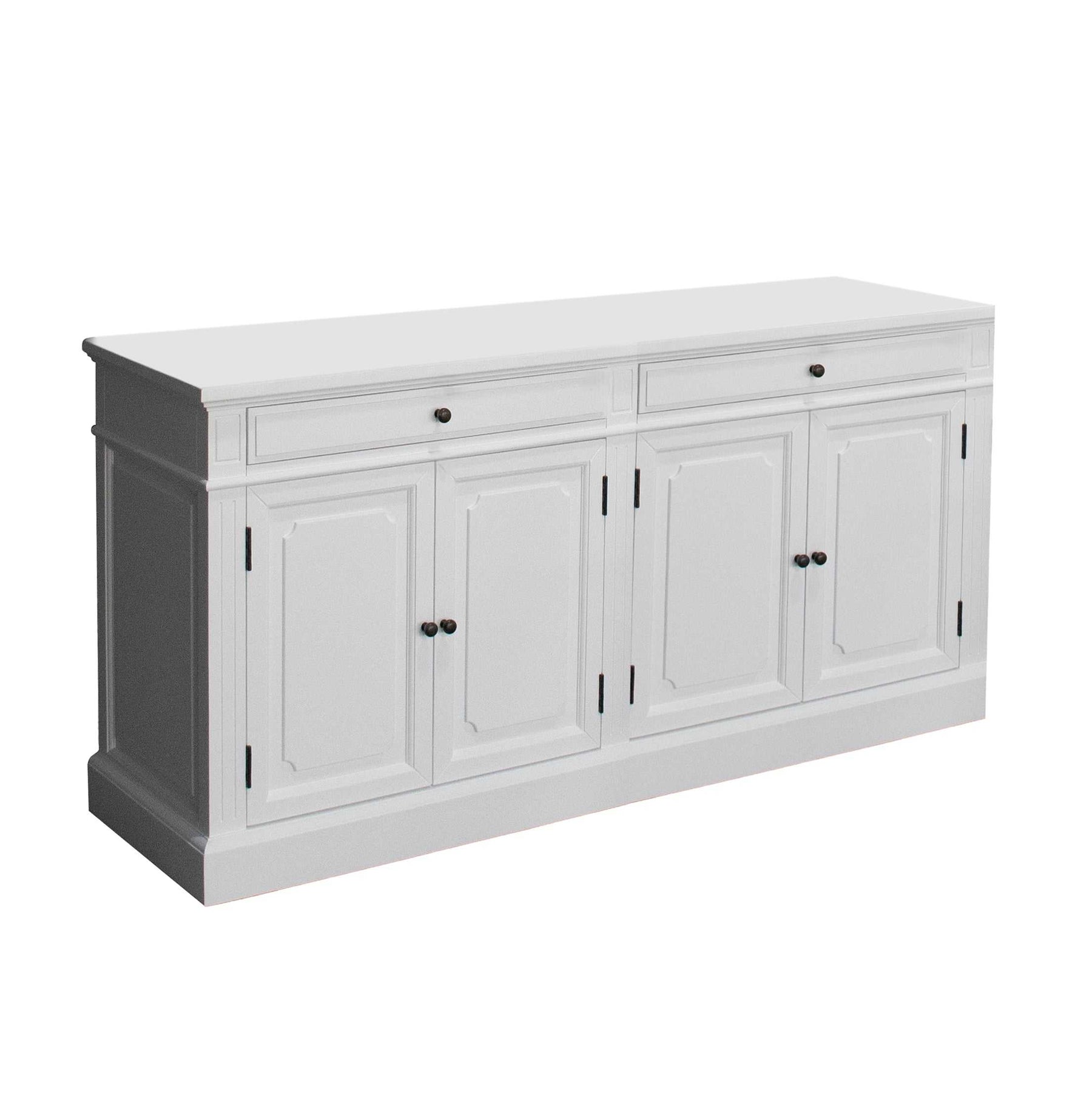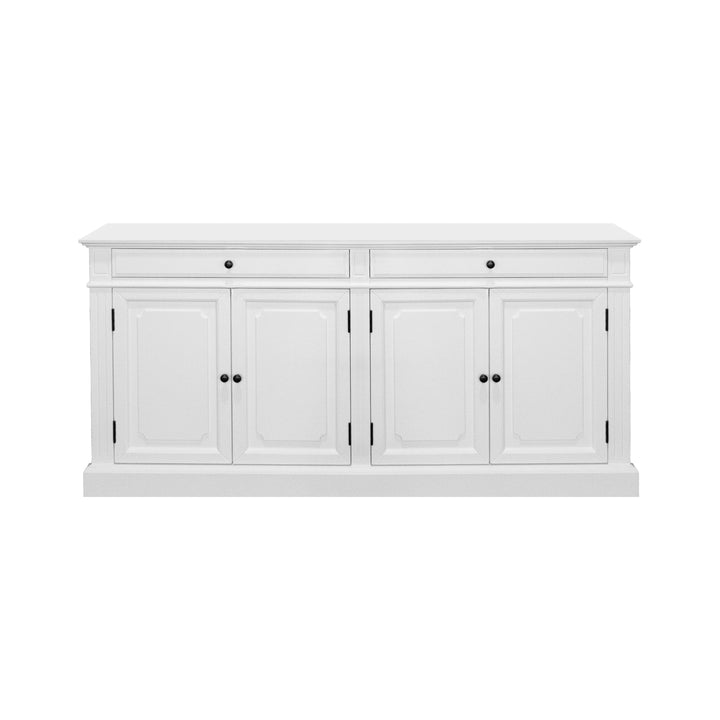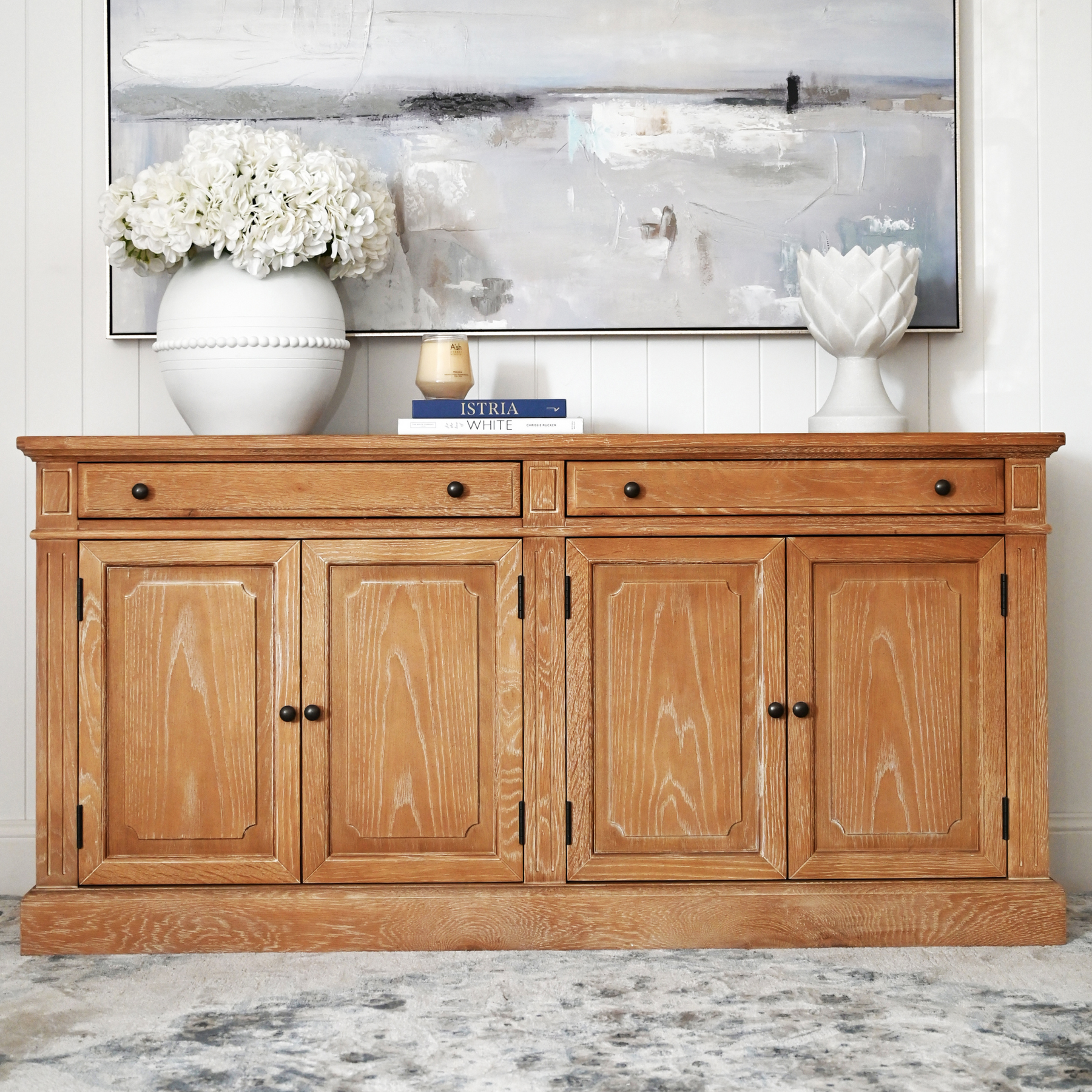 The Oxford Medium Buffet features a classic shaker-style design that complements a variety of home décors beyond just Hamptons interiors. Its timeless profile offers ample storage, including two cupboards with shelving and two large drawers. Designed for versatility, it works well as both a buffet and an entertainment unit. Available in satin white birch wood or whitewashed American oak, this piece balances durability with refined style.