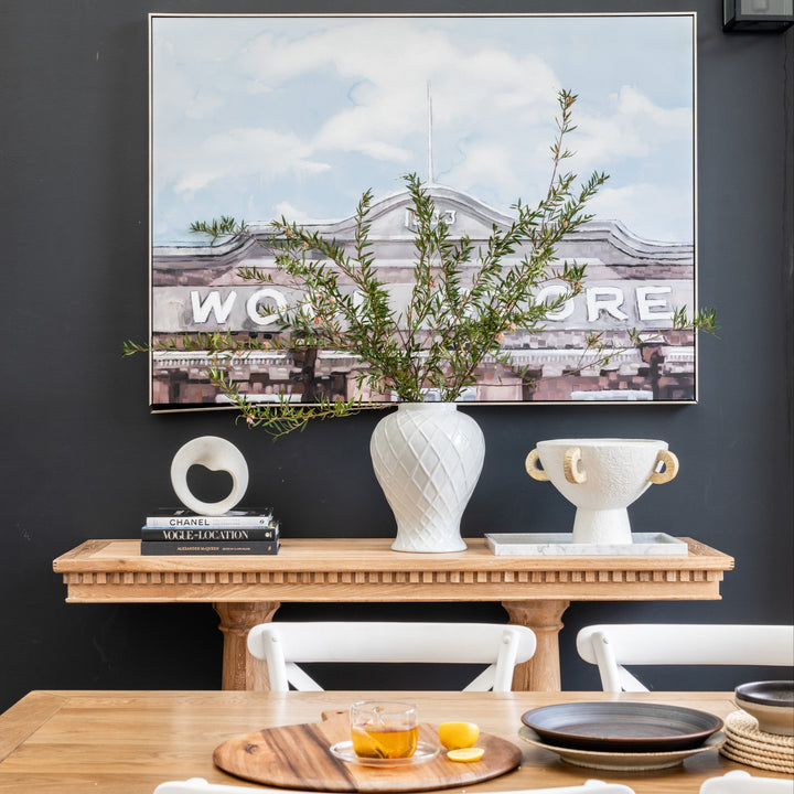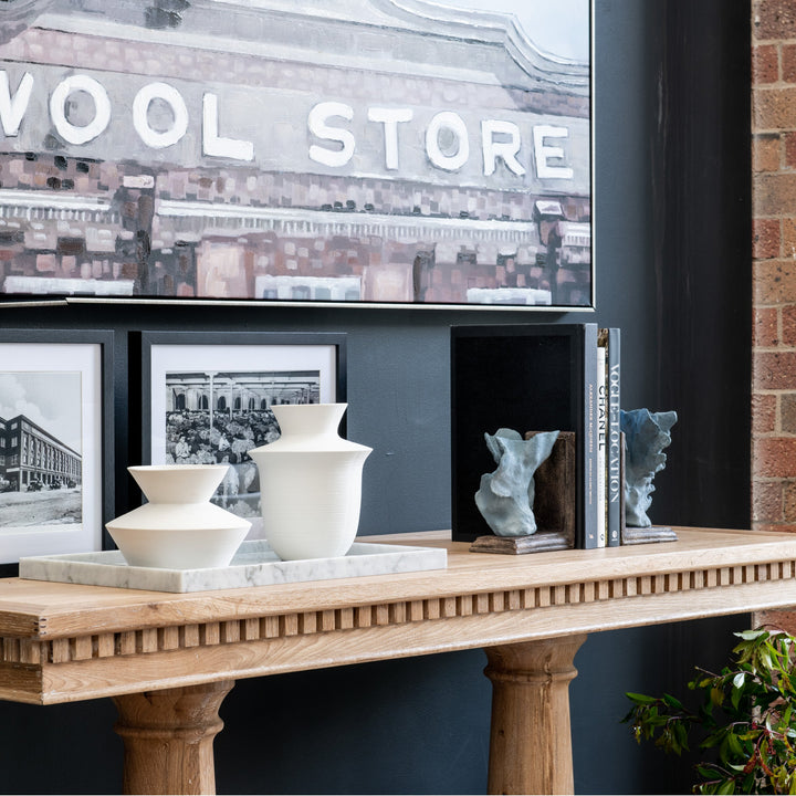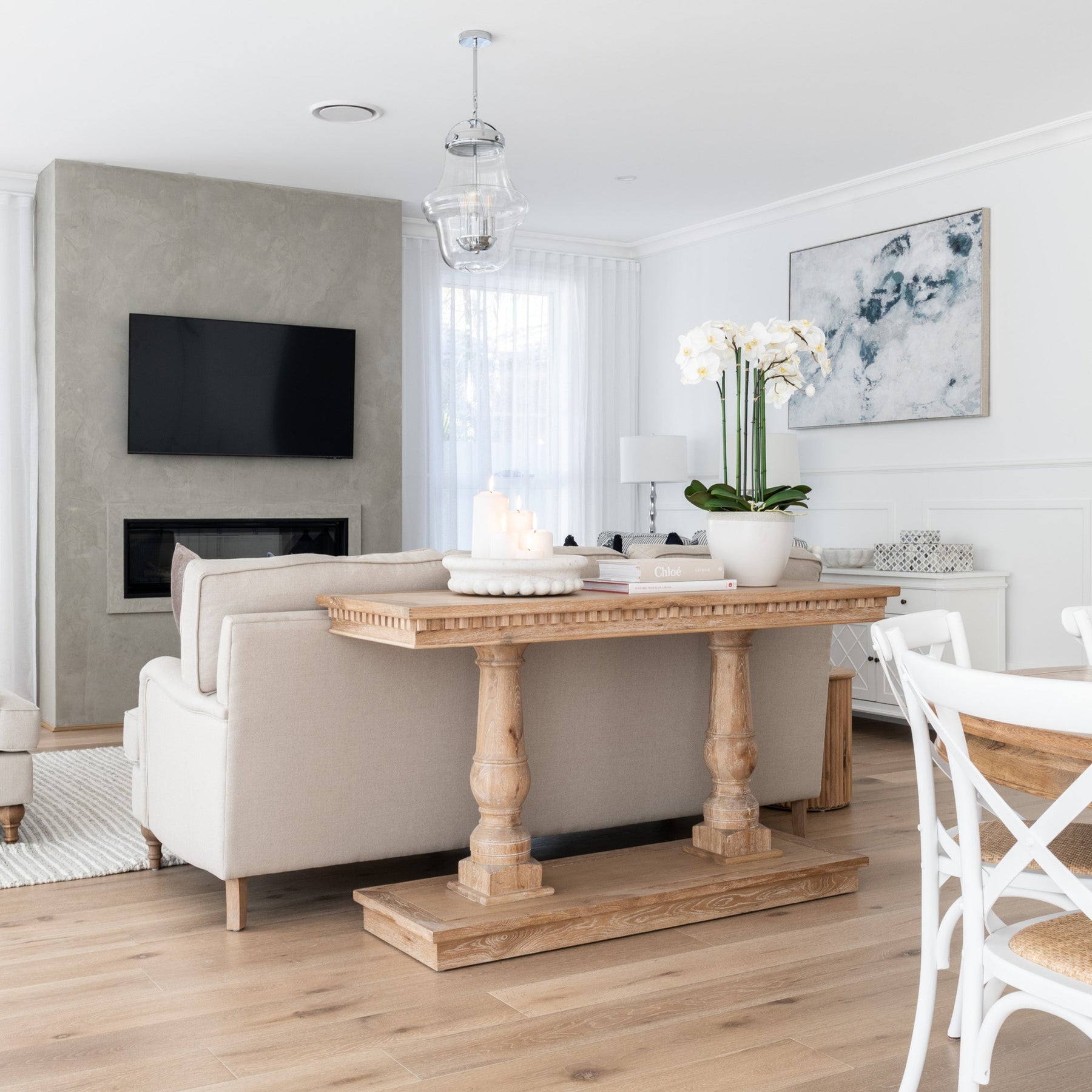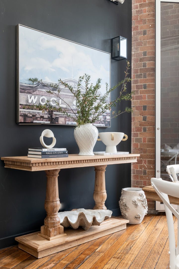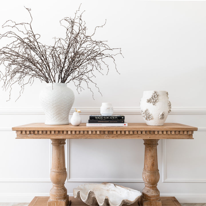 Make a statement in your space with the handcrafted Petra Medium Console Table, designed in a classic baluster style that adds organic and traditional charm and elegance to any room. With its detailed craftsmanship and oak finish, this piece effortlessly blends timeless design with versatile function—use it as a hallway console, sofa back table, or even a stylish TV stand.