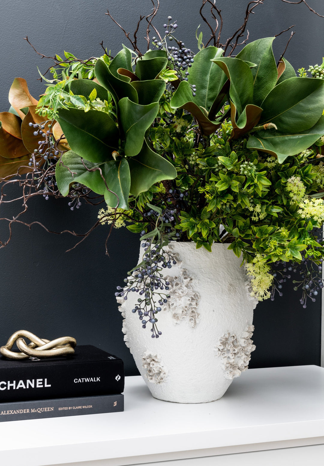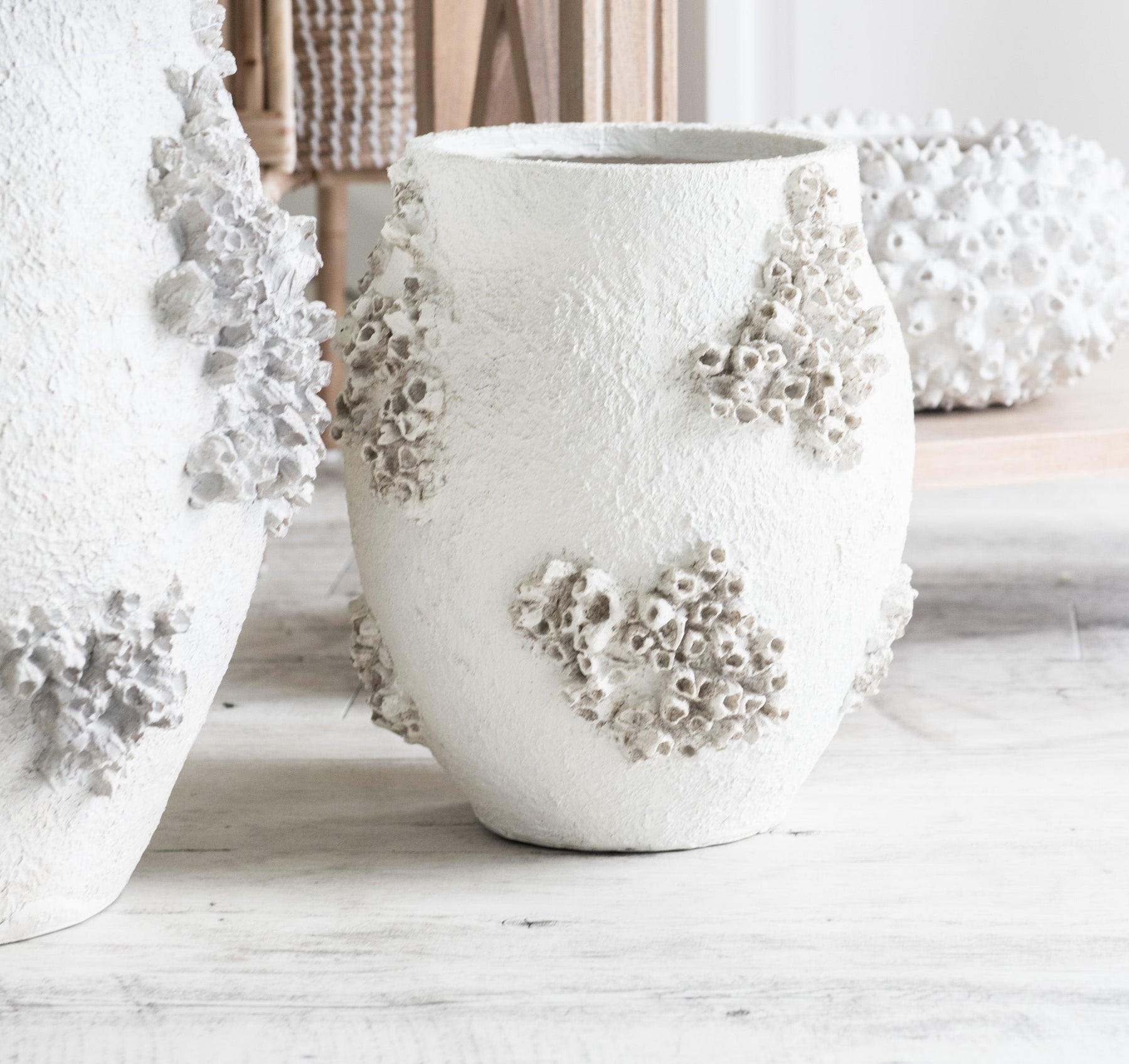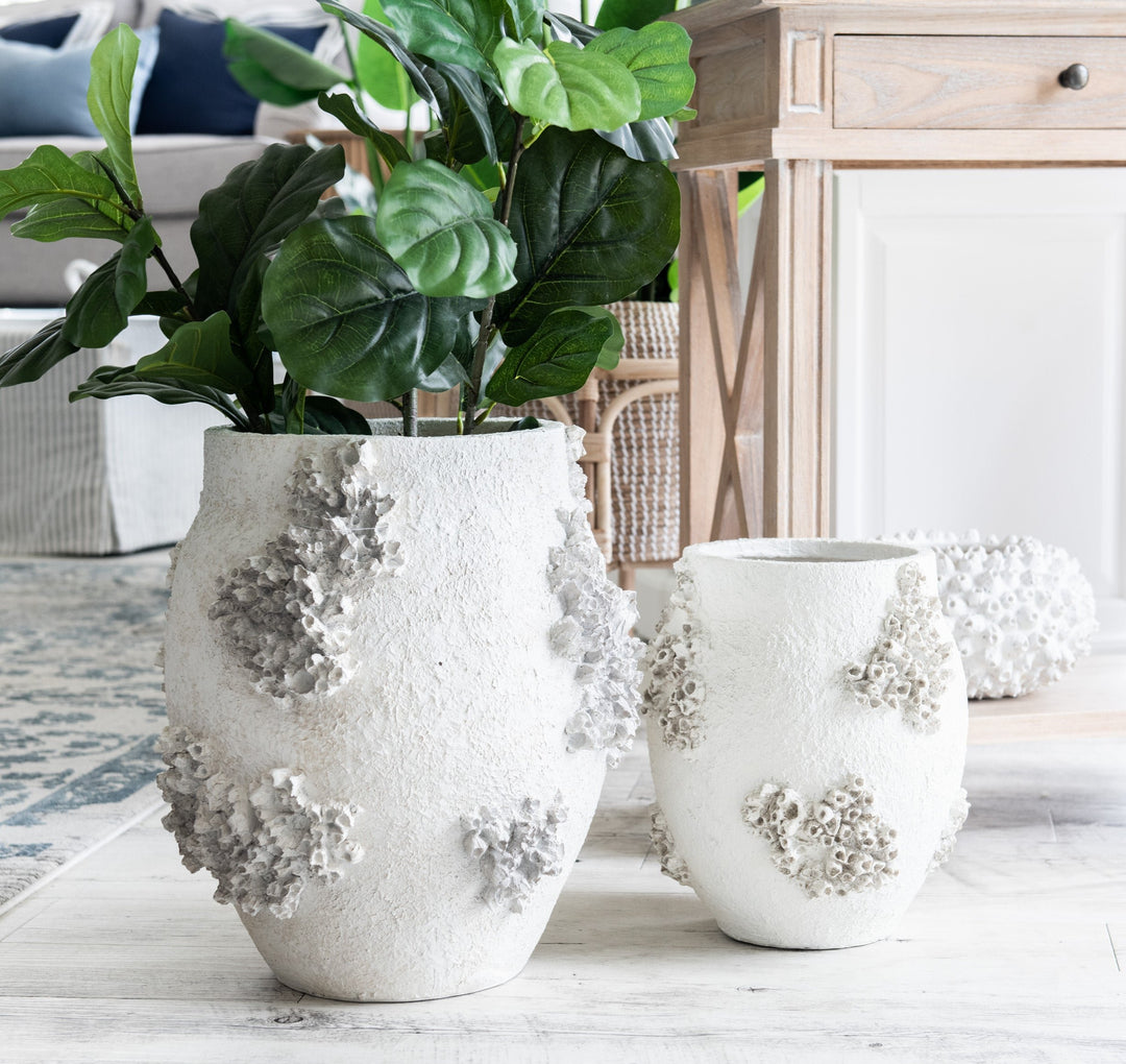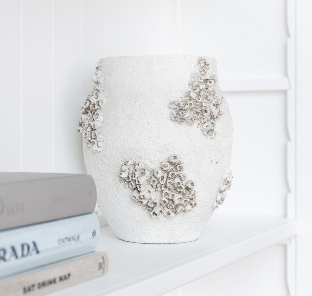 The Barnacle Pot is perfect for displaying beautiful greenery or is a unique stand-alone decorative piece for coastal or Hamptons interiors.