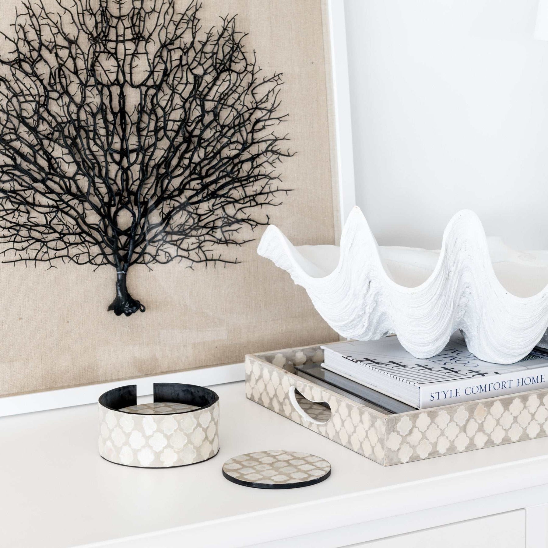 Quatrefoil Mother Of Pearl Coaster Set - Neutral/grey