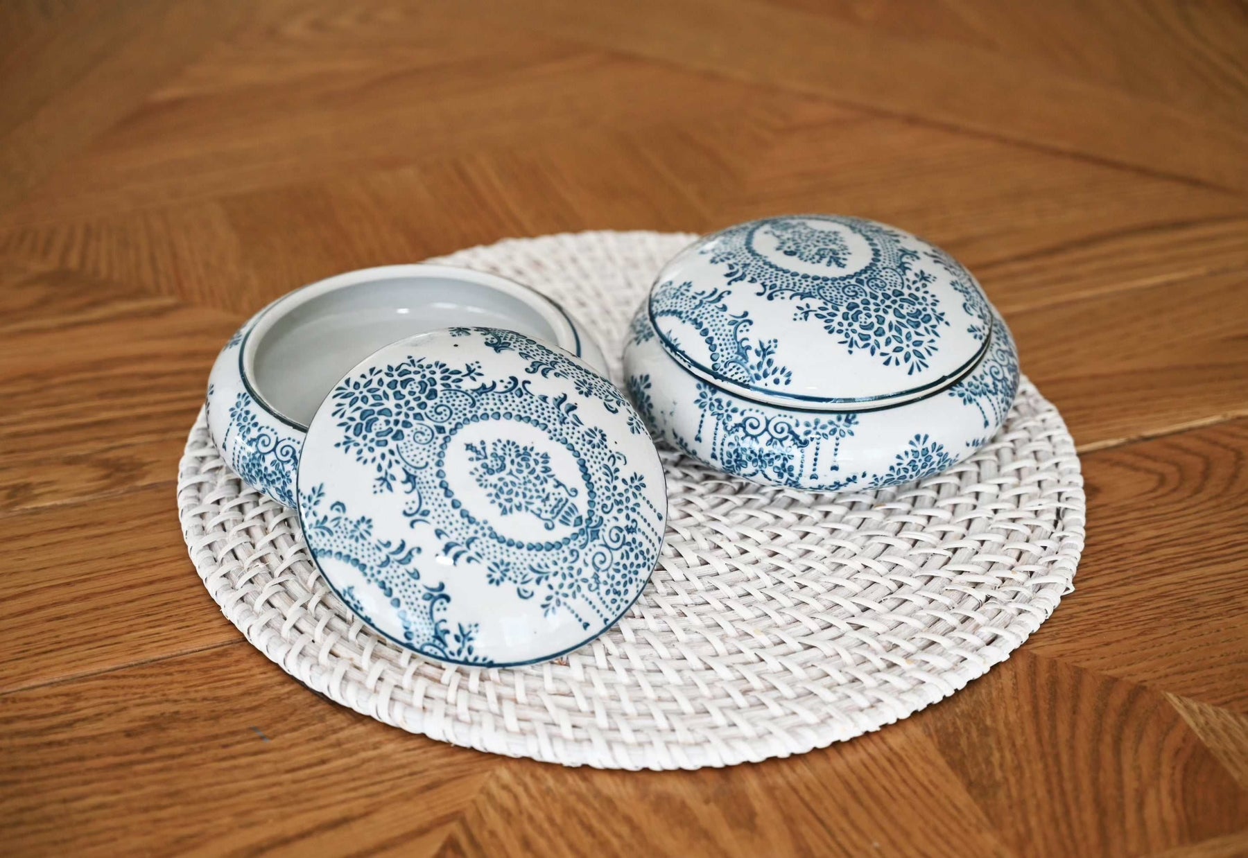 Expertly handcrafted, our 'Delicate Scroll' ceramic trinket box is a highly versatile and popular choice for adding elegance to any dressing table, console, or cabinet.