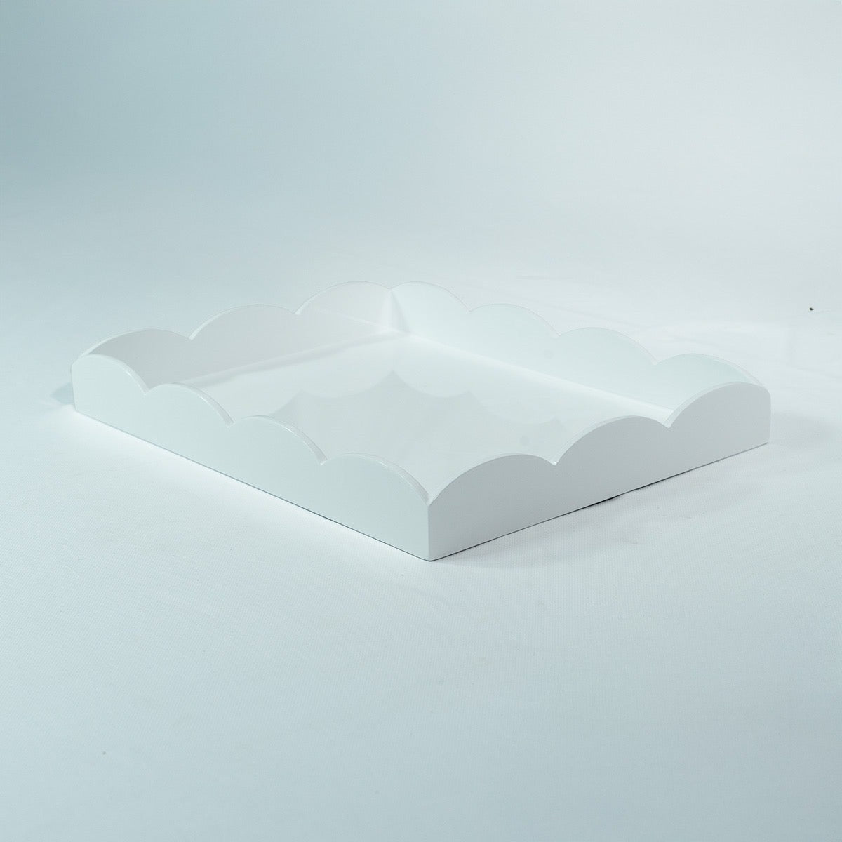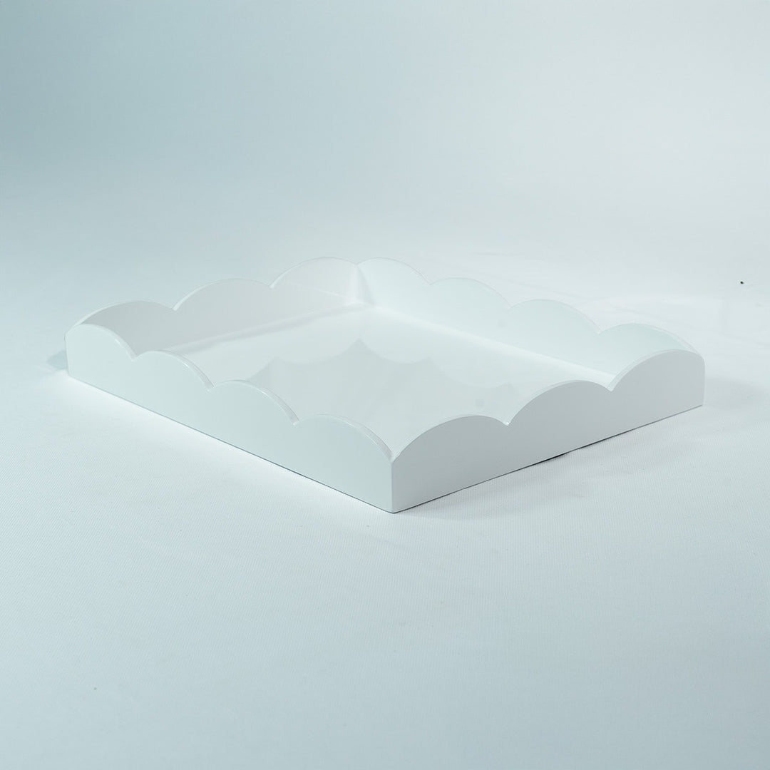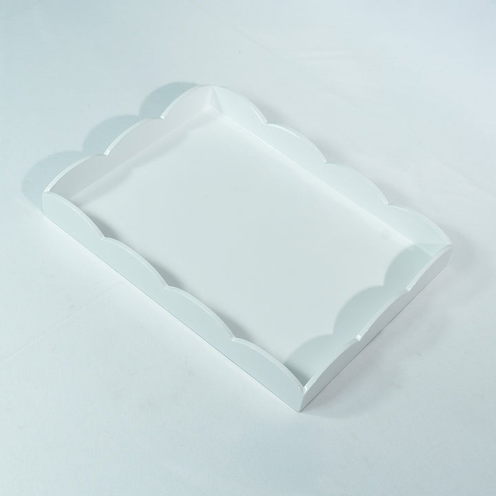 Enhance your hosting capabilities with our latest lacquer tray, showcasing a modern scallop design that is both charming and on trend. These trays are long-lasting, practical, and adaptable, making them perfect for serving refreshments or adding flair to bedrooms, bathrooms, offices, ottomans, dining and coffee tables. Each frame is finished with between 15- 20 coats of high gloss lacquer, meticulously hand polished between each coat. Cleaning is a breeze with a simple wipe of a warm damp cloth.