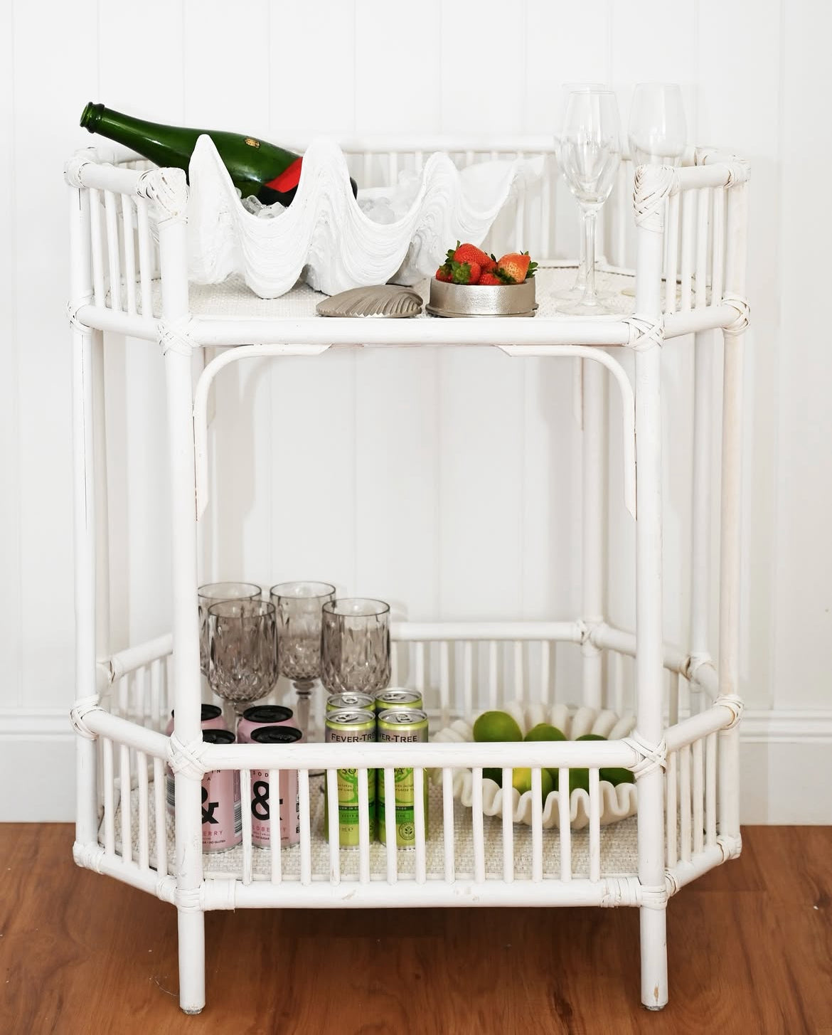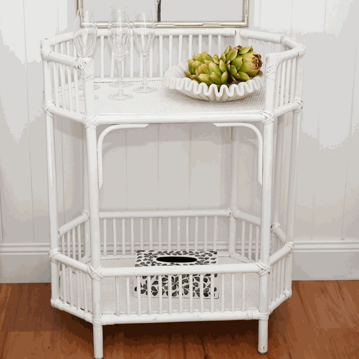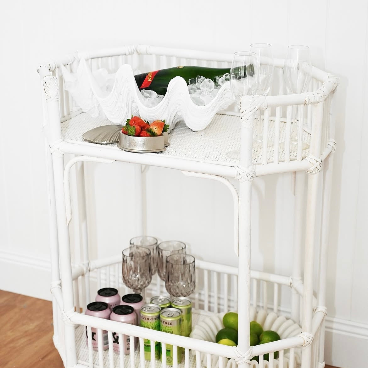 Add a touch of tropical elegance to your home with this Rattan Bar Cart, beautifully crafted in Plantation Style. With two spacious shelves, it's ideal for showcasing your favourite bottles, glassware, or decorative items. Whether you're serving drinks at a gathering or using it as a chic organiser this versatile piece brings both function and style to any room.