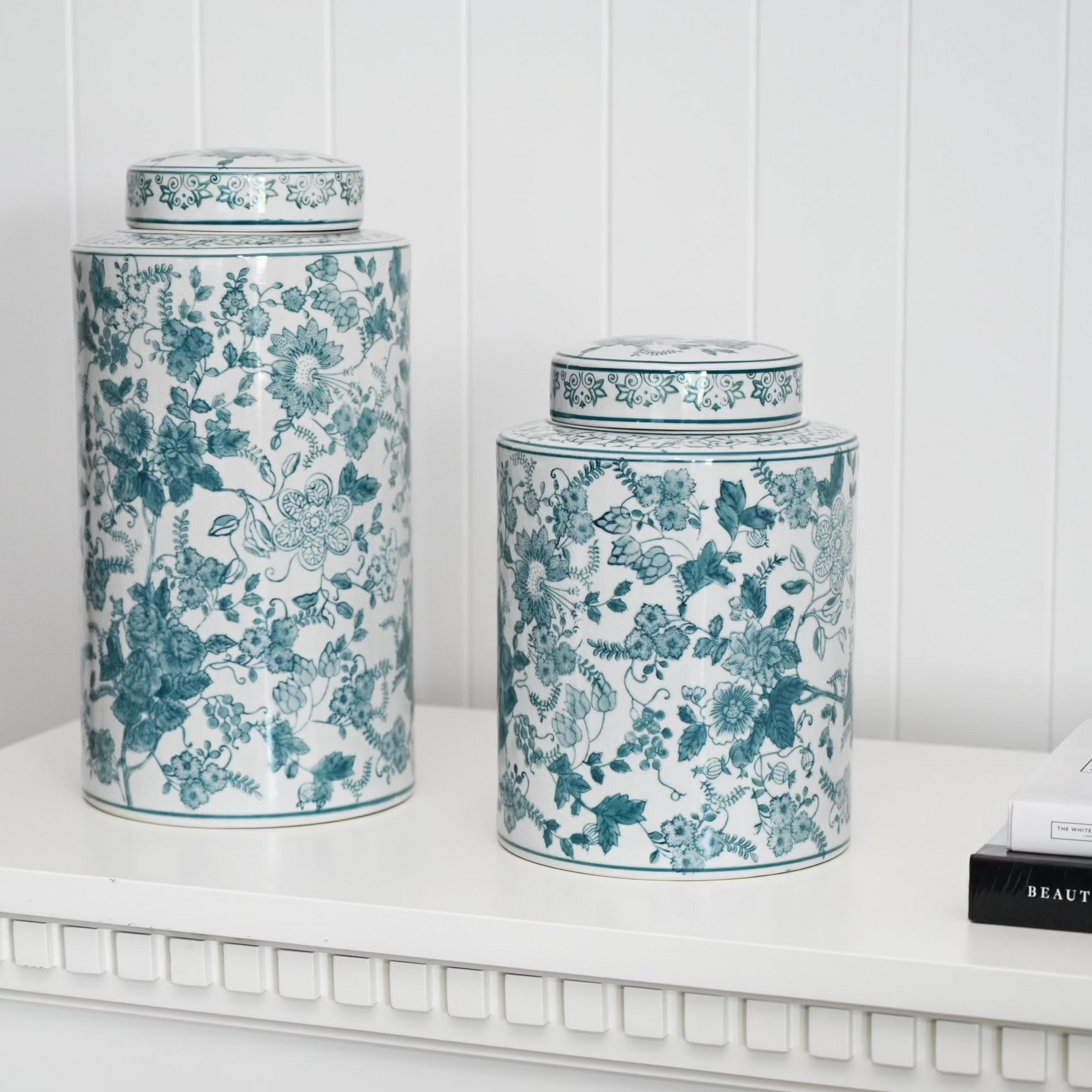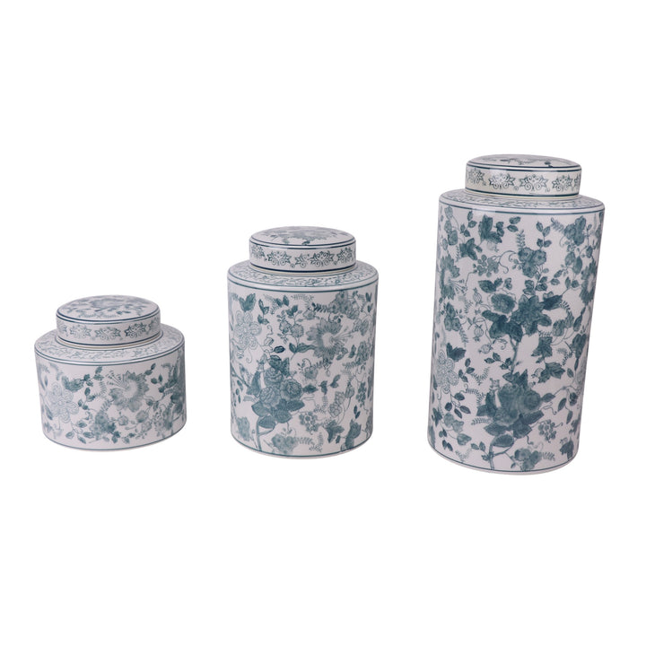 Crafted with high-quality materials and expert glazing, these jars are designed to be a standout feature in any room. The removable lid adds versatility, allowing you to use the jar as a stylish vase for fresh flowers or as a decorative accent on its own. Whether displayed on a shelf, mantel, or table, these jars bring a refined, coastal charm to your space.
