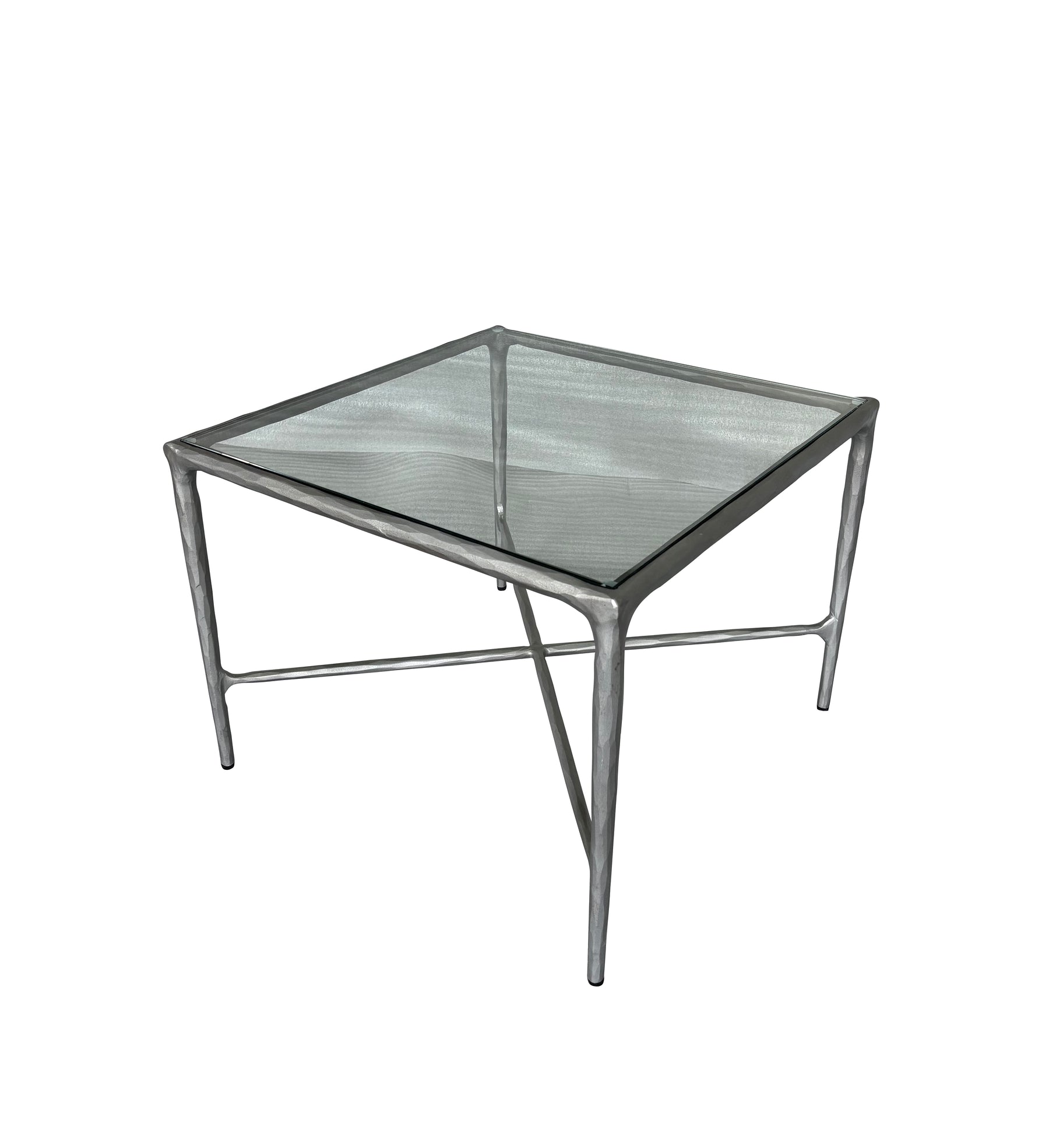 Our Soho side table captivates with its elegantly forged silver iron legs and tempered clear glass top. The Soho collection complements both modern and traditional interiors, making it a versatile addition to a variety of décor styles.