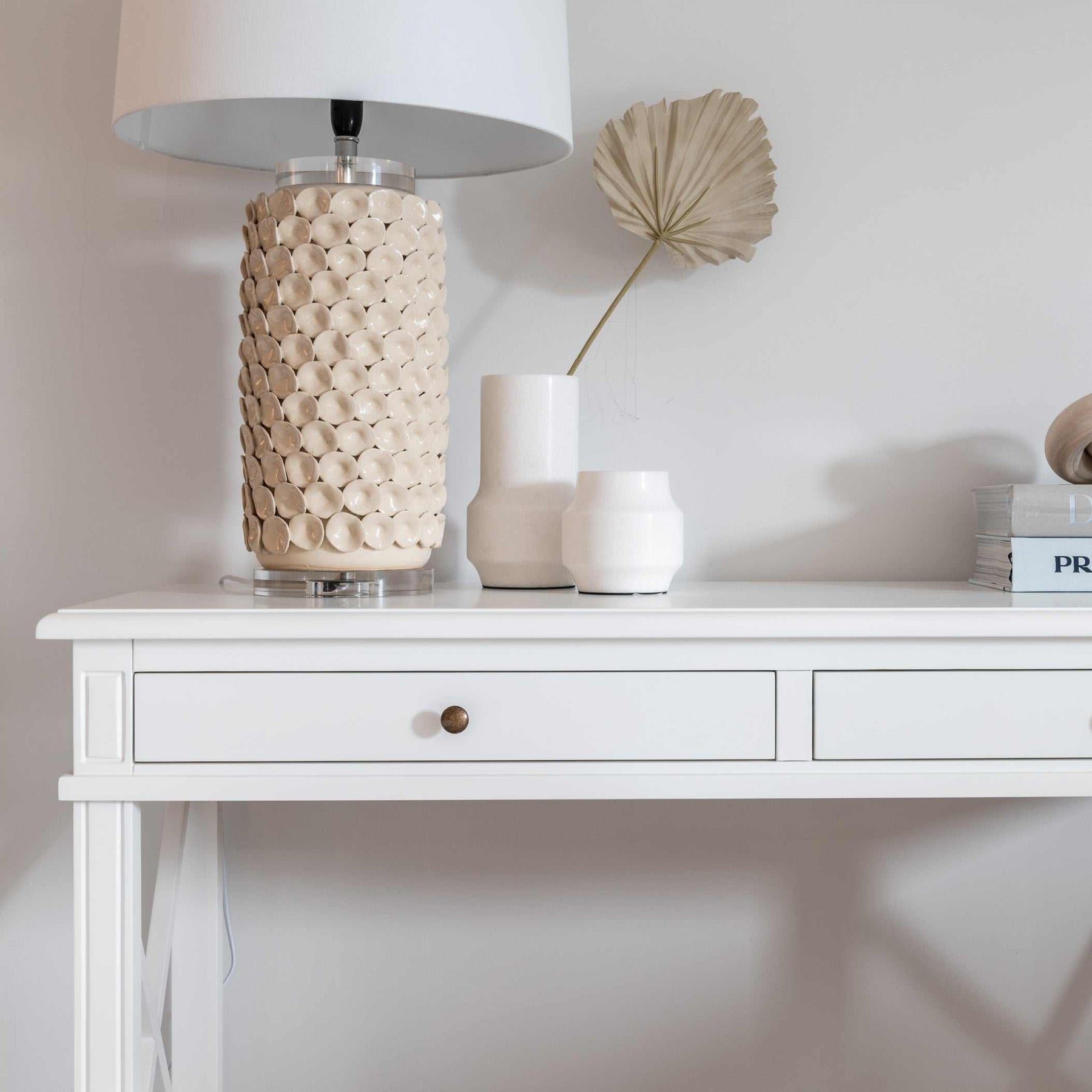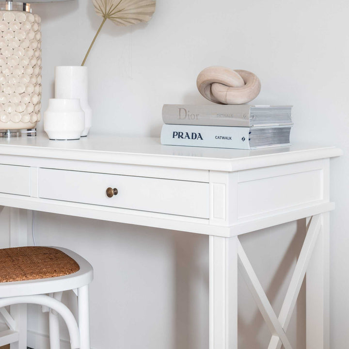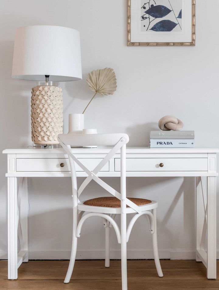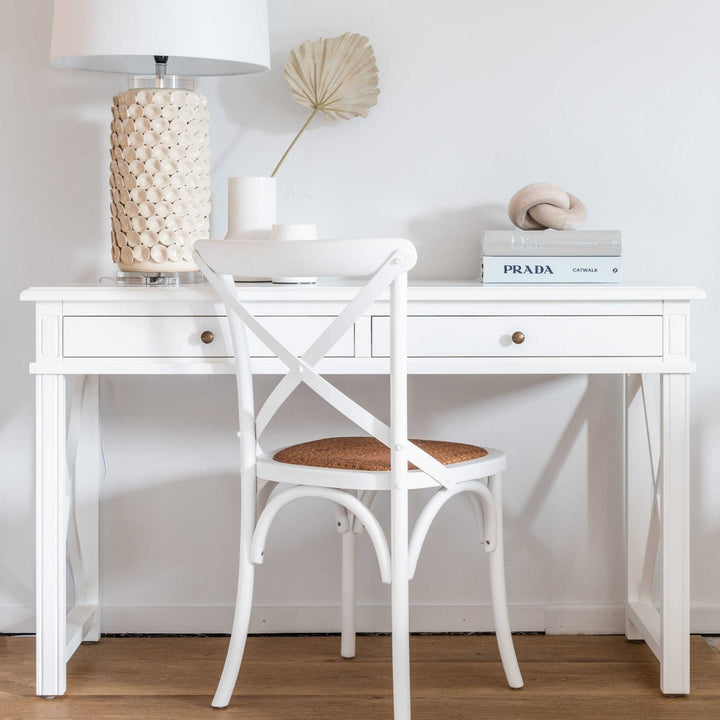 Our South Beach desk is a customer favourite that has stood the test of time. The defining design element of this range is the signature cross detail on the sides—a subtle nod to the architectural details often seen in Hamptons-style homes and classic beach houses.