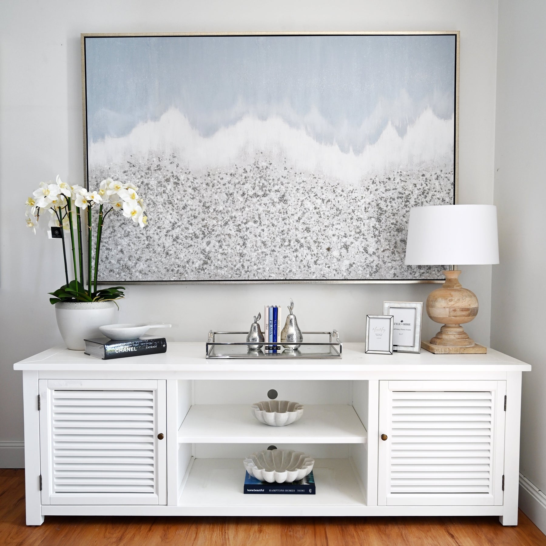 The 'Surf Break Landscape' extra large canvas presents an abstract aerial perspective of where ocean waves meet the shore, showcasing a harmonious blend of blues, whites, and sandy hues. Ideal for Hamptons-inspired interiors, this wider format expands on the popular 1m x 1m size. Notably, customers appreciate the textured sand detail, adding depth and tactile interest. This canvas is a refined and captivating addition to any space.
