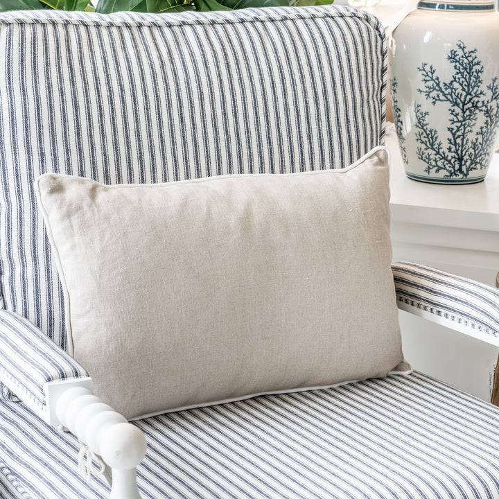 Threads 100% Linen Lumbar Cushion - Oatmeal With White Piping