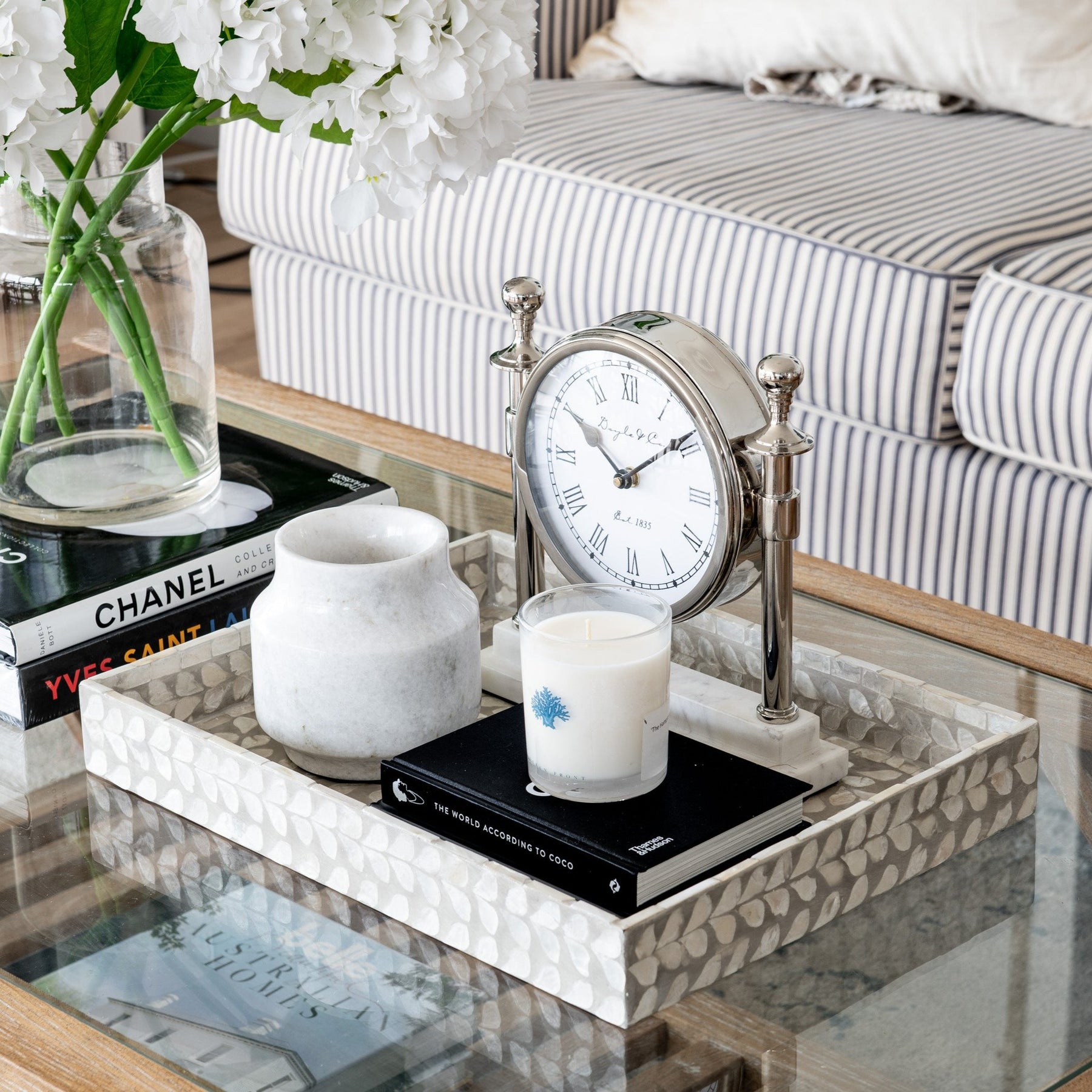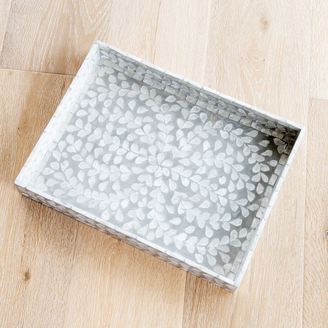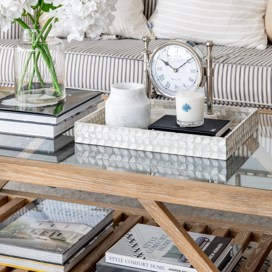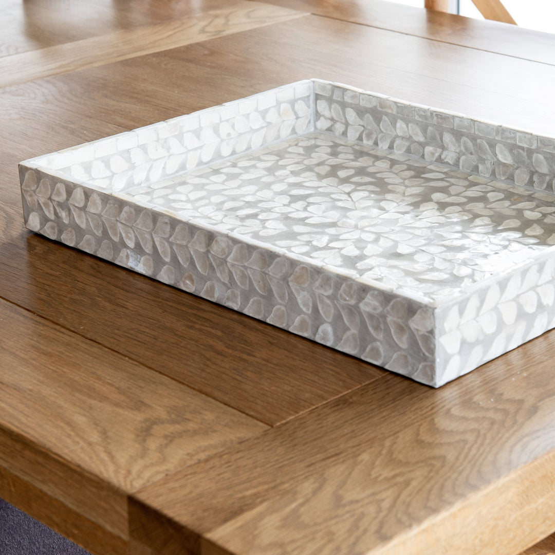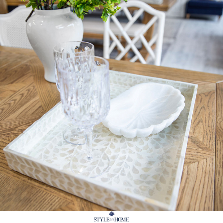 This stunning tray range features gorgeous mother of pearl inlay - perfect for displaying glassware, coasters, and napkins or adding to a coffee table or ottoman. Pair with our mother of pearl coasters for a complete Hamptons inspired look.